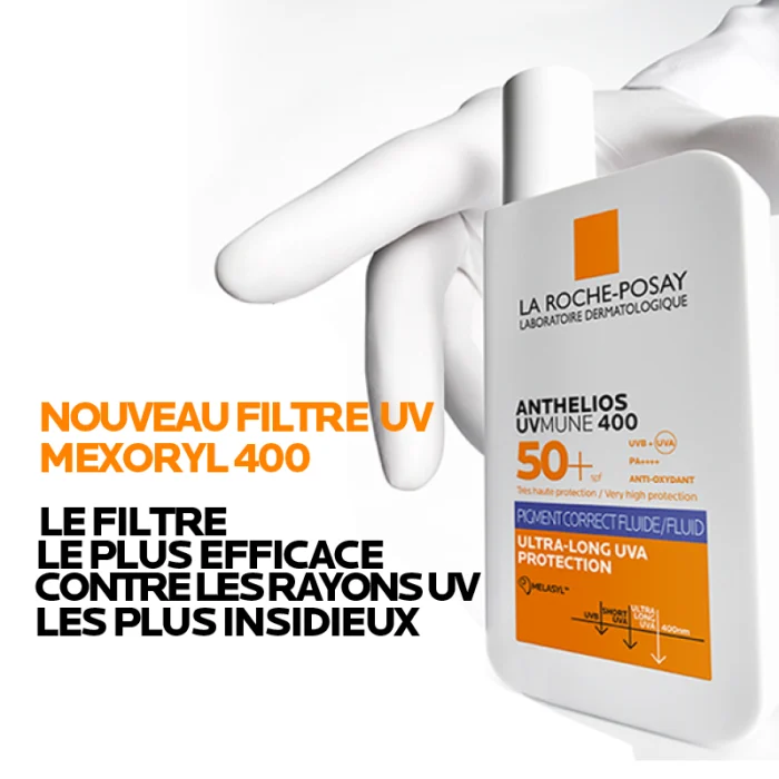 La gamme UVMUNE 400 met en avant une protection contre les UVA, UVB et UVA ultra-longs. La marque présente Mexoryl 400 comme son filtre UV dédié aux UVA ultra-longs, particulièrement impliqués dans le photovieillissement et l’hyperpigmentation induite par les UV.