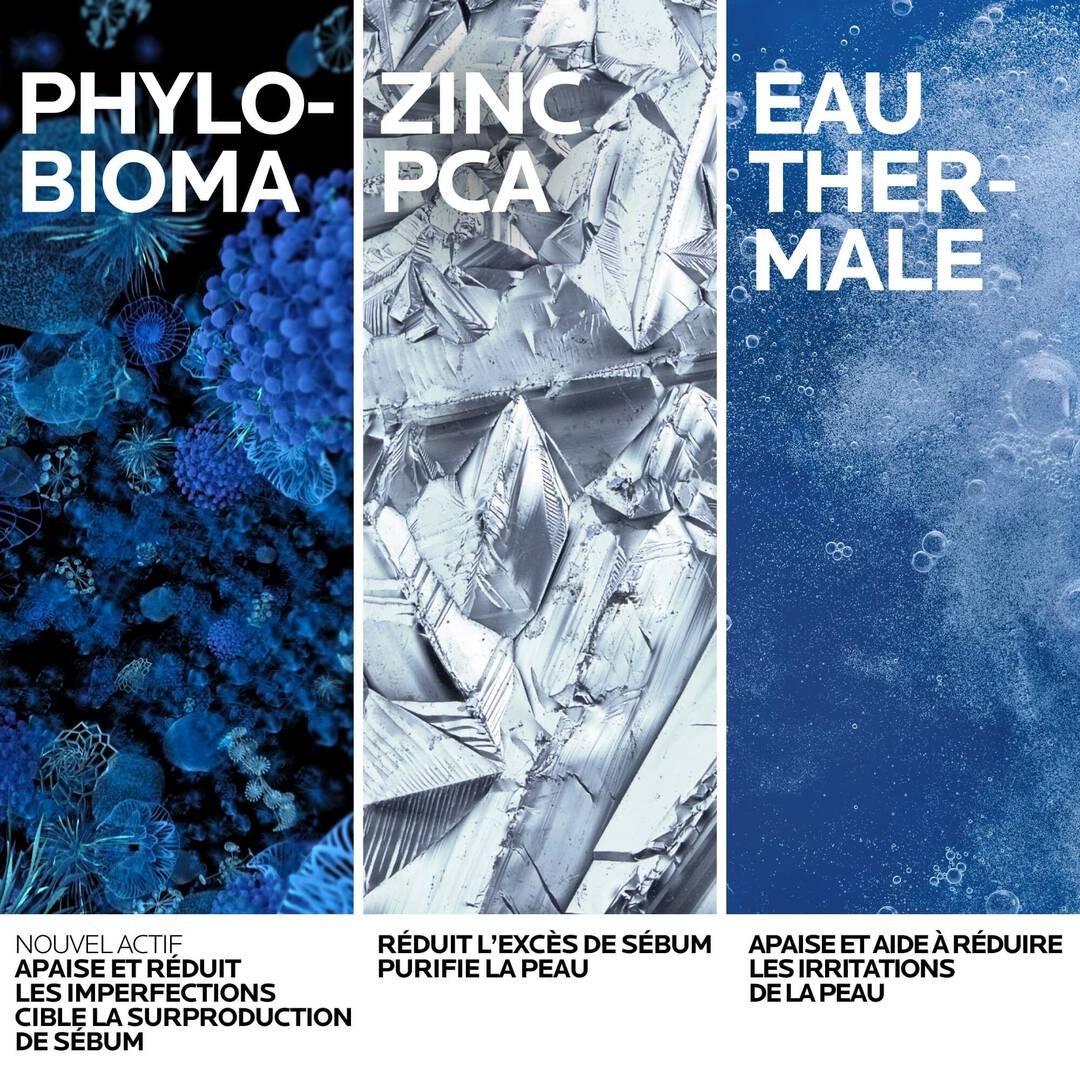 La Roche-Posay met en avant une formule enrichie par la science du microbiome, associant une technologie d’optimisation du pH et l’actif Phylobioma, destiné à cibler une souche de bactérie impliquée dans les imperfections. La marque indique que ce gel aide ainsi à réduire les imperfections et la surproduction de sébum à la source.