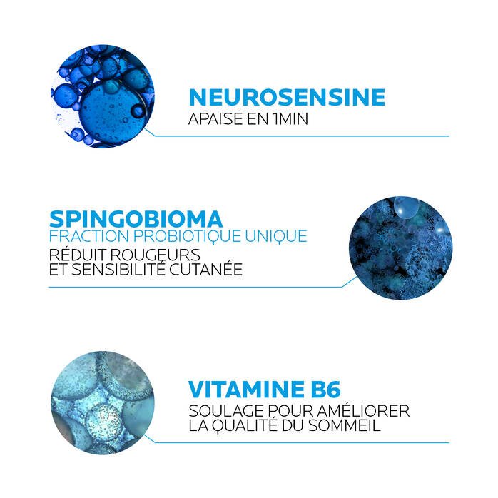 Sa formule associe la Neurosensine, connue pour son action apaisante, à une fraction probiotique appelée Sphingobioma, mise en avant par la marque pour aider à compenser le déséquilibre du microbiome cutané et renforcer les défenses naturelles de la peau. Elle contient aussi de la Vitamine B6, qui aide à soulager et protéger la peau tout au long de la nuit.
