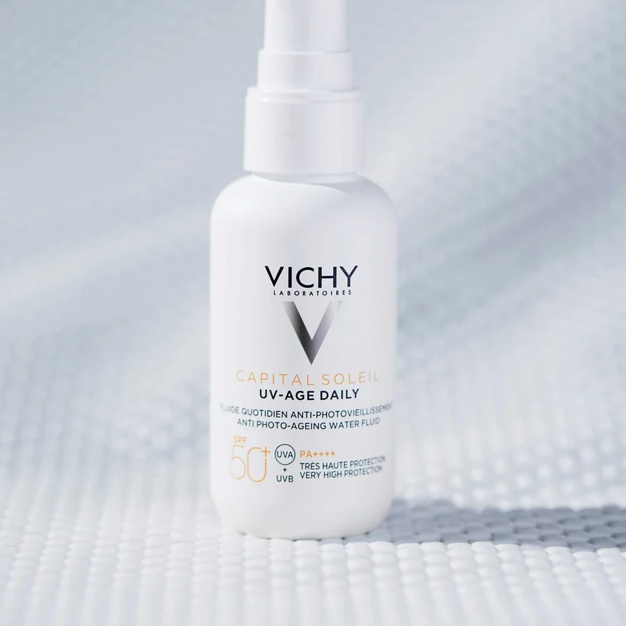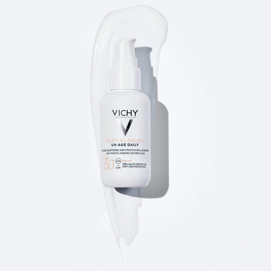 La marque présente UV-AGE Daily comme le premier fluide anti-photo-vieillissement de Vichy. Sa technologie multi-brevetée Netlock forme un film protecteur ultra-fin, homogène et résistant, invisible sur la peau, afin d’assurer une protection solaire élevée contre les UV, responsables de plus de 80 % des signes de l’âge cutané.