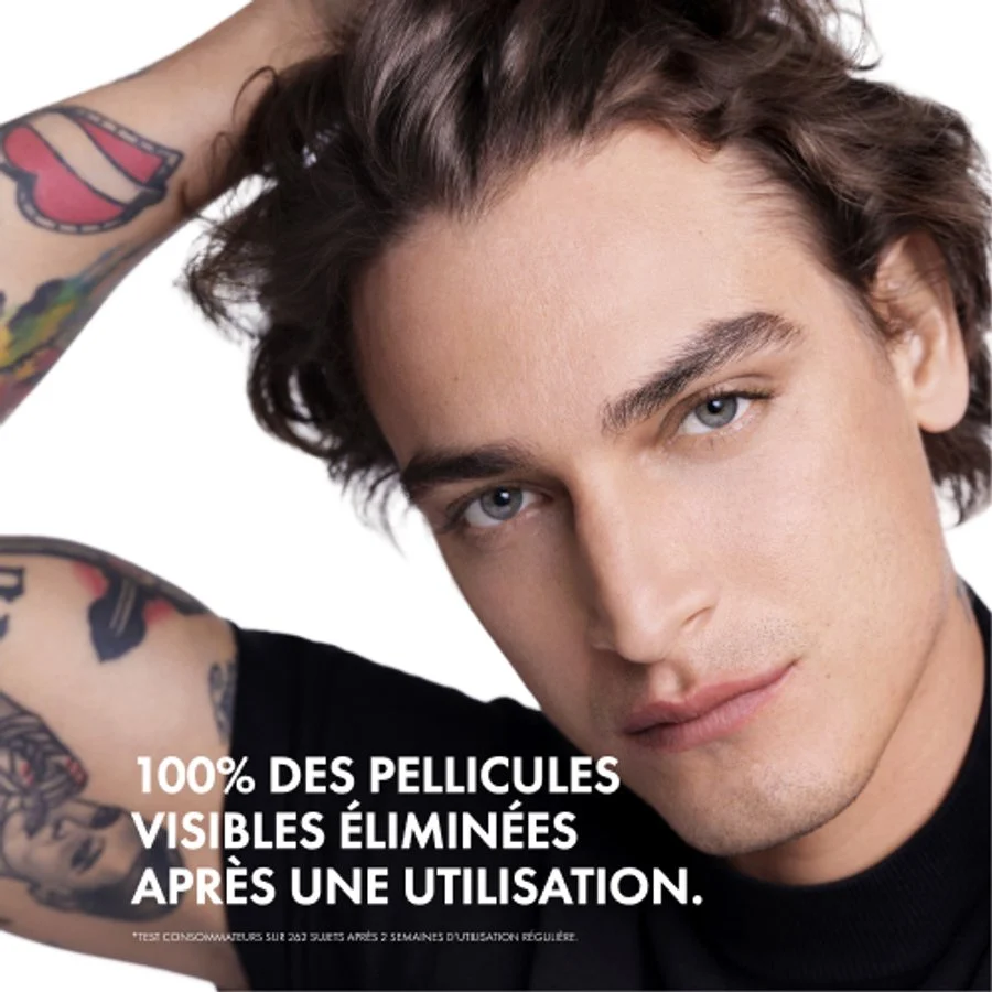 La marque indique que ce shampooing aide à éliminer 100 % des pellicules visibles et agit à la source du problème en aidant à rééquilibrer le microbiome du cuir chevelu. Vichy France le présente aussi comme un soin qui contribue à soulager les démangeaisons et à apaiser le cuir chevelu. :contentReference[oaicite:2]{index=2}