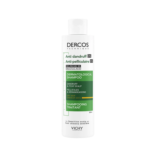 Vichy Dercos Technique Shampooing Traitant Anti-Pelliculaire DS Cheveux Secs 200 ml est un shampooing anti-pelliculaire traitant conçu pour les cheveux secs. Sa formule au disulfure de sélénium aide à éliminer 100 % des pellicules visibles, à nourrir intensément la fibre capillaire et à apaiser les démangeaisons ainsi que l’inconfort du cuir chevelu.